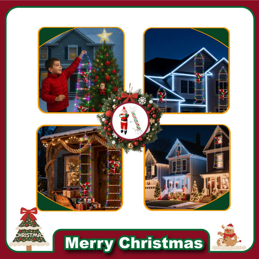 Classic Santa Claus Climbing Decoration – Battery Operated Christmas Ornament with Music & Silent Mode, Festive Hanging Santa for Windows, Mantel & Party Decor